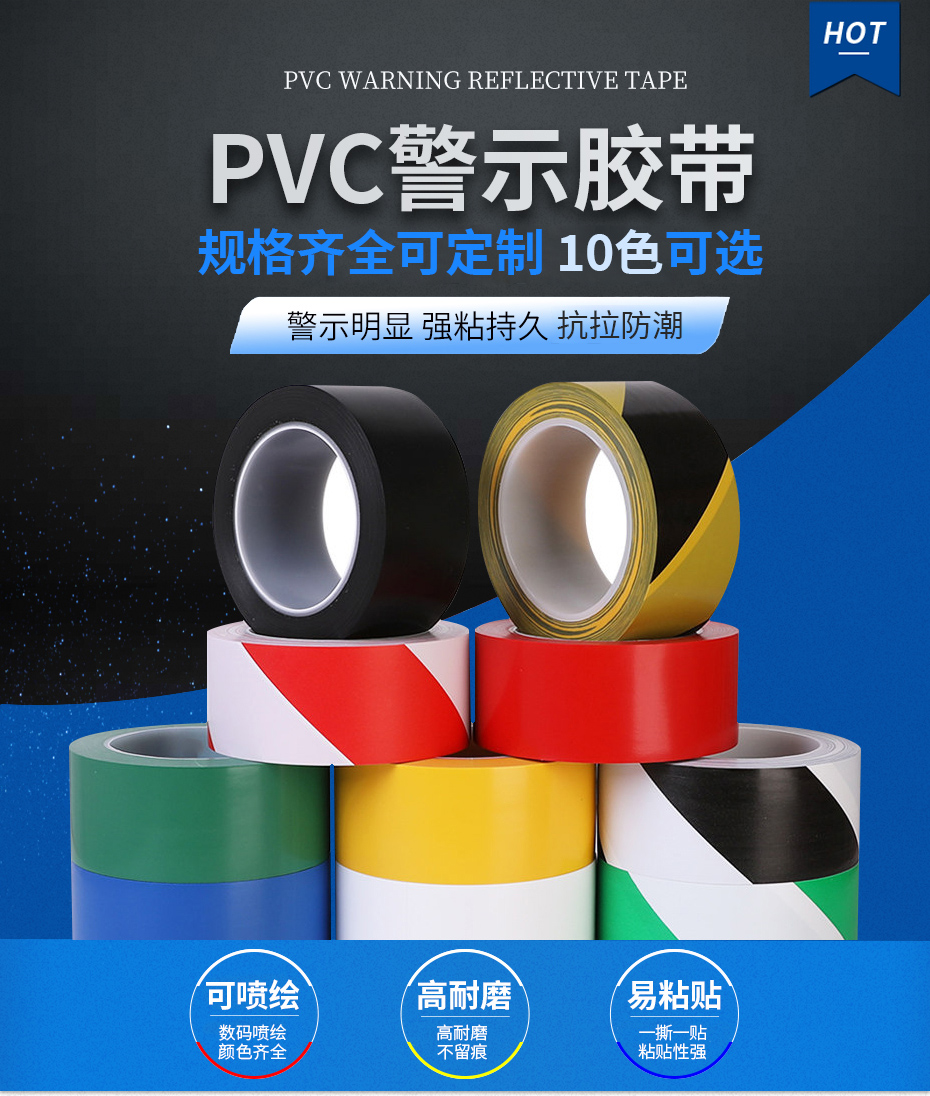 各種顏色警示膠帶均有,尺寸齊全,規格可按需定制